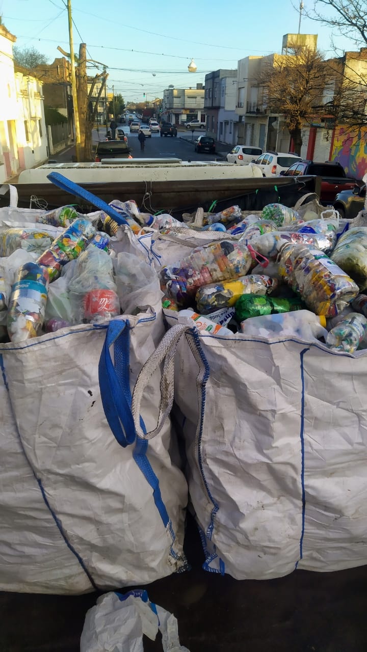 Se pesó una gran cantidad de residuos plásticos y botellas a una ONG de la ciudad de Bernal que lo convierte en madera plástica.
