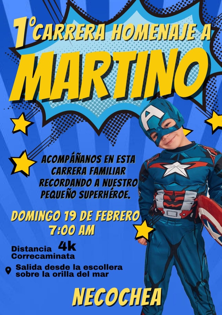 "Acompáñanos en esta carrera familiar recordando a nuestro querido superhéroe” expresa el flyer de la iniciativa.