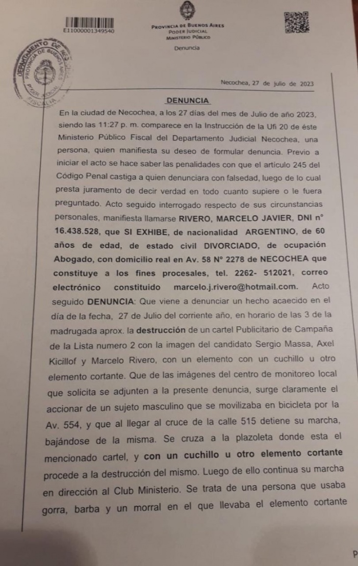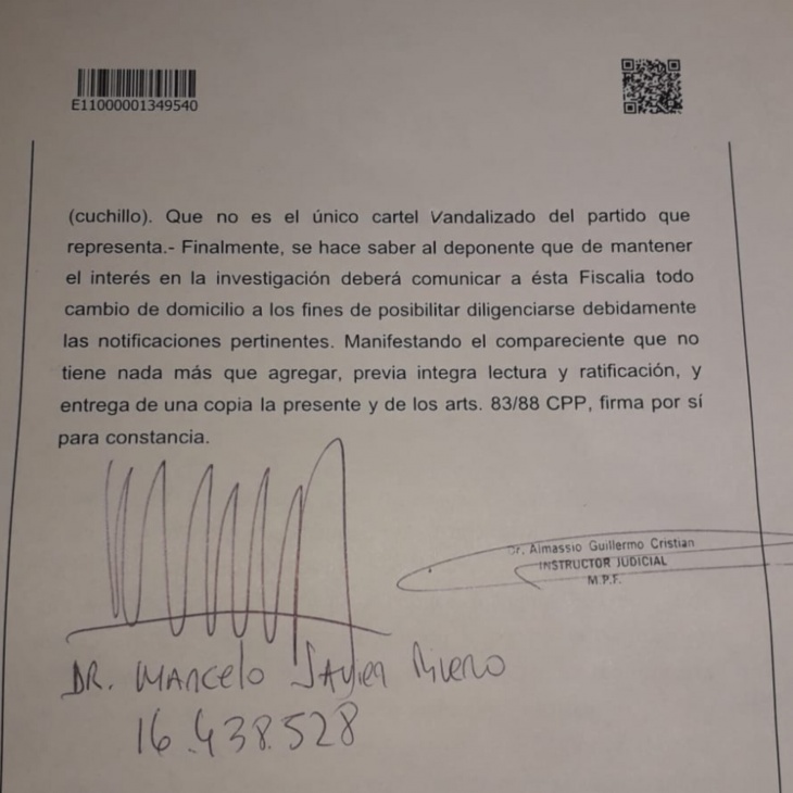 Luego efectuó la denuncia correspondiente en fiscalía y ojala la justicia tome cartas en el asunto para que este sujeto cese en su accionar.