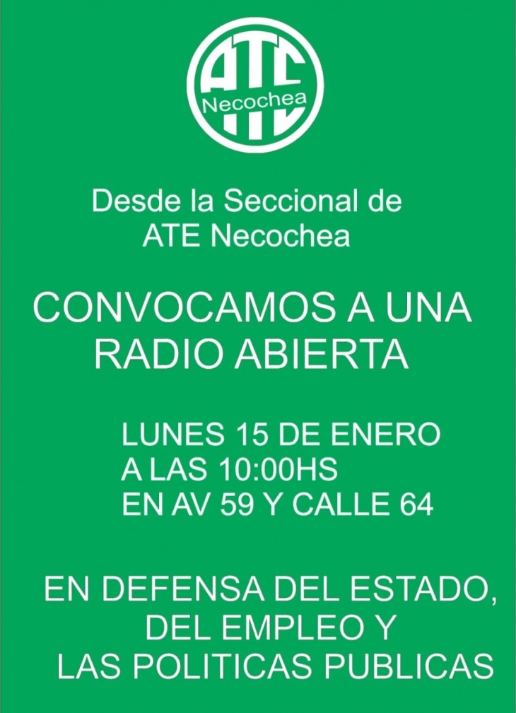 En el marco de las acciones de ATE a nivel nacional, la jornada de lucha convocada para el 15 de enero busca manifestar el repudio a los despidos de empleados públicos en diferentes sectores del Estado, tanto a nivel nacional como porteño. La movilización en Necochea se suma a las actividades programadas a nivel nacional, anticipándose a la convocatoria de la CGT prevista para el 24 de enero.