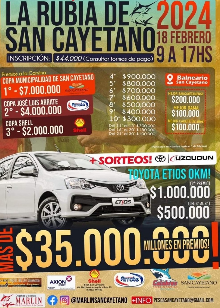 Por si fuera poco, entre los más de 700 participantes inscriptos será sorteado un Toyota Etios cero kilómetro. Además habrá sorteos por un millón y 500 mil pesos (del 3° al 8°).