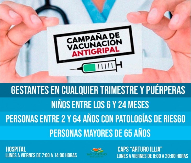 Vale recordar que se aplica en el vacunatorio del Hospital, de lunes a viernes de 7:00 a 14:00 horas, y en el CAPS “Arturo Illia” de lunes a viernes de 8:00 a 20:00 horas.