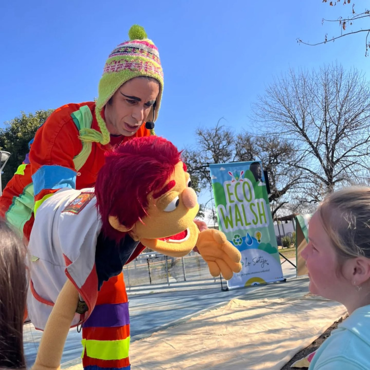 Con títeres, canciones en vivo, coreografías, clown y objetos escénicos, Eco Walsh genera un clima de diversión, sorpresa y ternura, logrando que niñas, niños y familias se conecten con el mensaje ambiental desde la emoción.