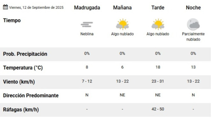 Tener en cuenta las ráfagas de viento previstas en la tarde, que pueden dificultar el tránsito en rutas y la práctica de actividades al aire libre.