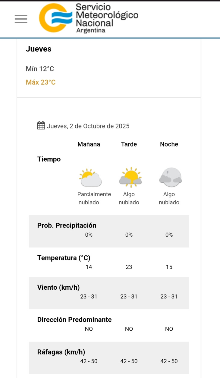 El viento será el gran protagonista del día: soplará desde el norte y noroeste con intensidades de entre 13 y 31 km/h, pero con ráfagas que podrían llegar a los 50 km/h a lo largo de toda la jornada.