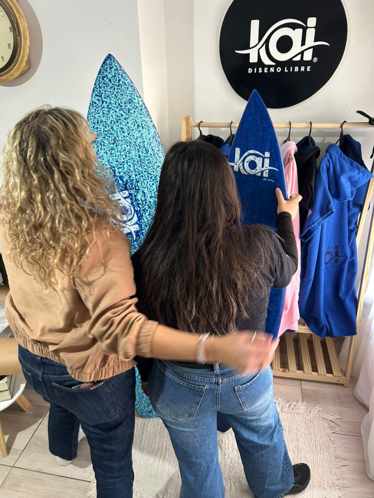 La marca Kai, cuyo nombre significa mar en hawaiano, se destaca por su conexión con el océano y la identidad costera. Lula explicó la inspiración detrás de sus diseños: “Kai representa el mar. Hicimos estampas propias basadas en el mar de Necochea y Quequén. Creamos remeras, buzos, ponchos para la playa. Nuestro producto estrella es el poncho cambiador, práctico, cómodo y ágil, que fue lo que nos seleccionó para Puro Diseño”.