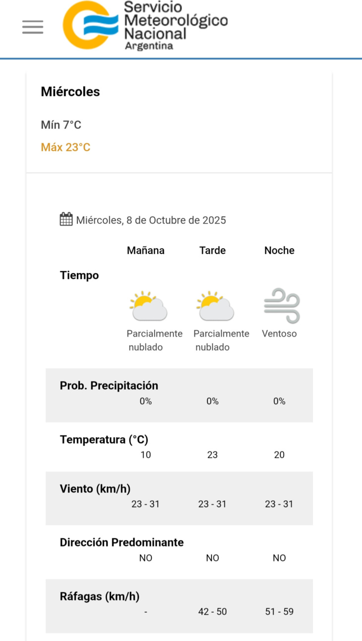 Hacia la noche, se espera que el viento rote al sector oeste y disminuya su intensidad, dejando un ambiente fresco pero agradable para las últimas horas del día.
