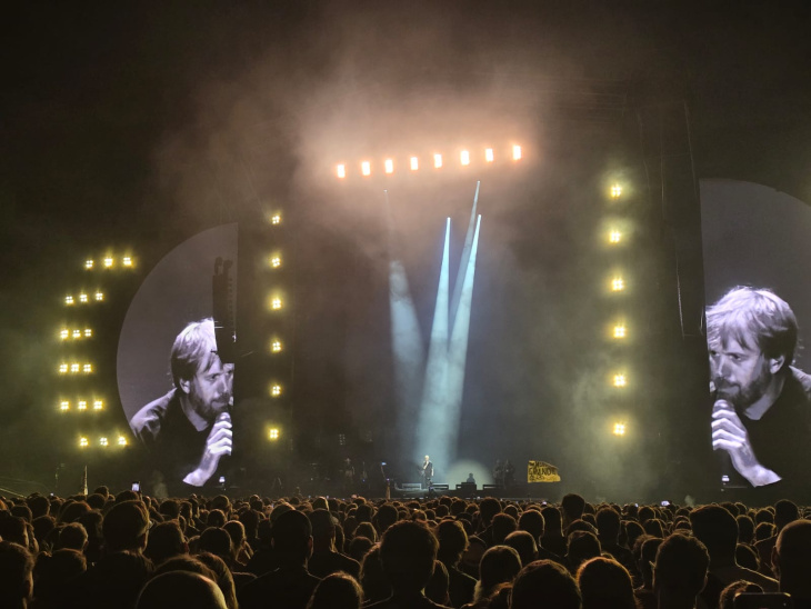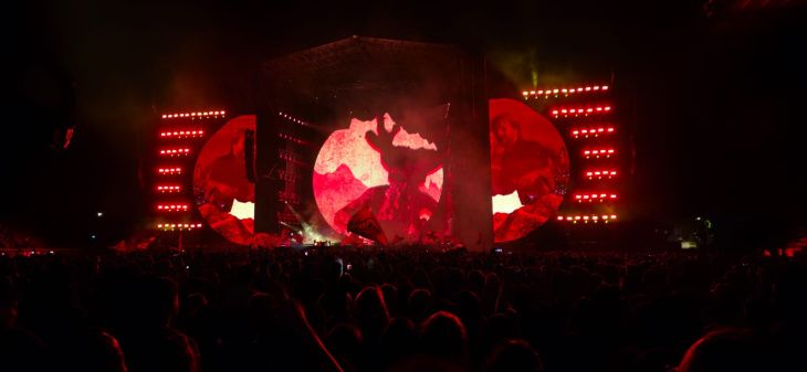 El concierto comenzó con “El túnel de la vida” e “Incandescente”, continuando con clásicos como “Mal delito”, “La vida cura”, “Gigante”, “Cuchillos y escudos”, “Abrime los ojos”, “La lanza de mi fe”, “Fuego de febrero”, “Ella es agua”, “Tesoro escondido”, “Oro de abeja”, “Domador de sombras”, “El cantar de los anzuelos”, “El Ángel del 152”, “Cómo decir que no”, “Romance con el desapego” y el icónico momento de “Las Gaitas”, donde la banda se trasladó buceando entre el público a otro punto del estadio ubicado en el centro de la cancha.