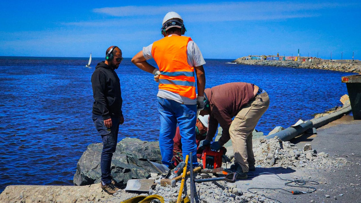 La Escollera Sur es uno de los puntos más transitados y expuestos a condiciones climáticas extremas dentro de Puerto Quequén. Por esa razón, el mantenimiento periódico es clave para prevenir incidentes y asegurar la continuidad de las operaciones marítimas y portuarias.