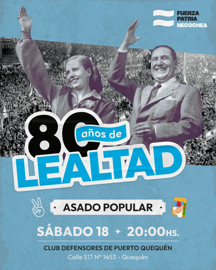 La actividad tendrá también un fuerte componente simbólico, con homenajes a figuras históricas del peronismo local y nacional, y se espera que sirva como punto de encuentro entre distintas generaciones de militantes. En ese sentido, los organizadores destacaron que el evento será “un espacio de reflexión, pero también de celebración por los 80 años de una lealtad que sigue vigente en la historia política argentina”.