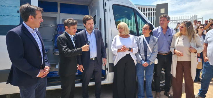 El gobernador y el ministro de Salud bonaerense, Nicolás Kreplak, entregaron las llaves del vehículo al intendente Arturo Rojas y a la secretaria de Salud municipal, Andrea Perestiuk. Se trata de un móvil completamente equipado para la atención de emergencias críticas y traslados interhospitalarios.