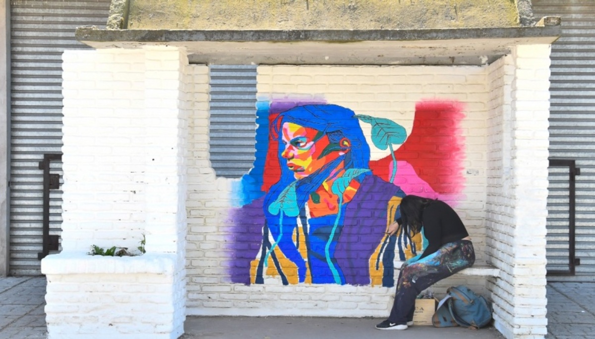 En este marco, el delegado Bernardo Amílcar señaló que “estamos muy agradecidos con Milagros por esta iniciativa de volcar su arte en las diferentes garitas de micros de Quequén, con el agregado que ella es de acá”.