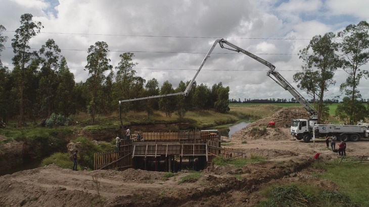 Se realizaron los últimos trabajos de hormigonado en la construcción del puente del Monte González, sobre arroyo Los Huesos, en la vecina ciudad de Lobería.