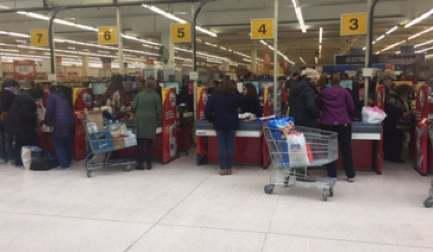 Este martes desde el SEC confirmaron que “se encuentra en estado de alerta ante el desdoblamiento de haberes ocurrido en los meses anteriores y a la falta de información sobre la fecha de cobro de los haberes de septiembre. Este sindicato, no descarta medidas de fuerza para este fin de semana” sobre el hipermercado en Avenidas 75 y 58 y su sucursal de Avenida 59 entre 62 y 64.