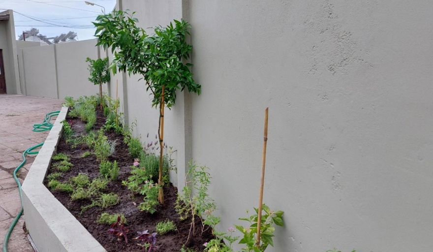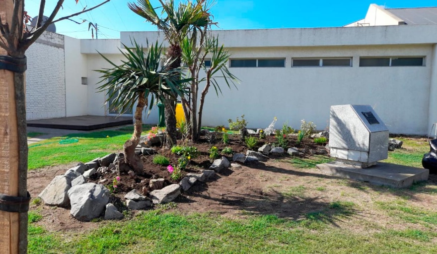 Con el asesoramiento técnico del área de Ambiente y Desarrollo Sostenible y la participación del personal, también se renovaron canteros internos con aromáticas y se generó un pequeño parque frente al Salón de Usos Múltiples.