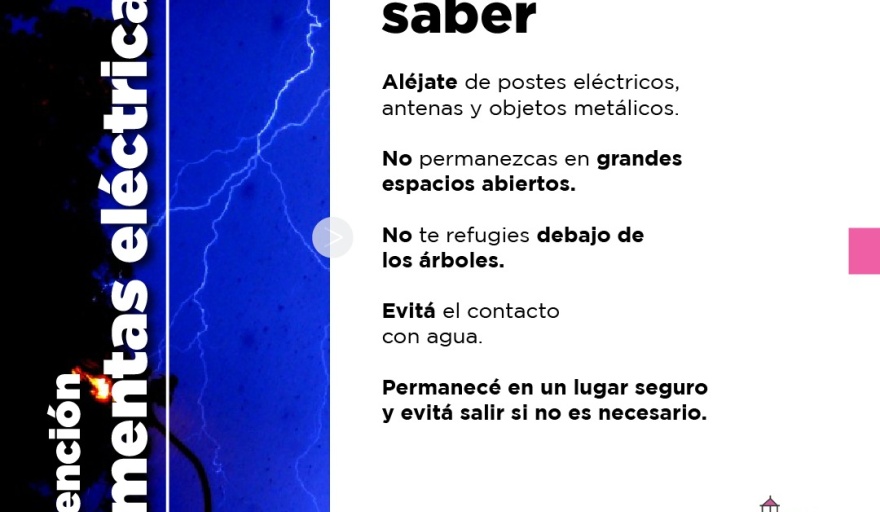 “El área será afectada por tormentas de variada intensidad, algunas localmente fuertes. Las mismas estarán acompañadas de intensas ráfagas, ocasional caída de granizo, fuerte actividad eléctrica y abundante caída de agua en cortos períodos”, comunicó el SMN y agregó que “se esperan valores de precipitación acumulada de entre 15 y 40 milímetros, pudiendo ser superados en forma puntual”.