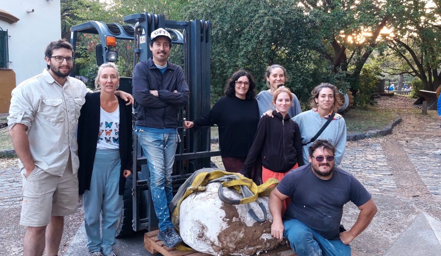 Para dar algunos detalles de cómo continua la logística, la directora del museo, Águeda Caro Petersen, explicó que “este bloque de yeso y huesos va a estar momentáneamente en un lugar del museo resguardado hasta que podamos acondicionar una entrada para llevarlo al sector de ciencias” para añadir que una vez allí “habrá que conseguir los insumos que se usan en estos casos para la limpieza y conservación que se requiere”.