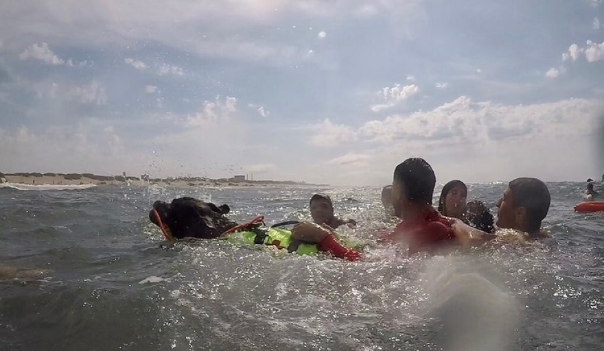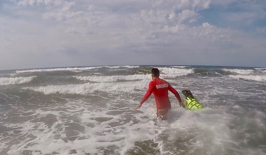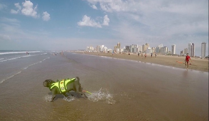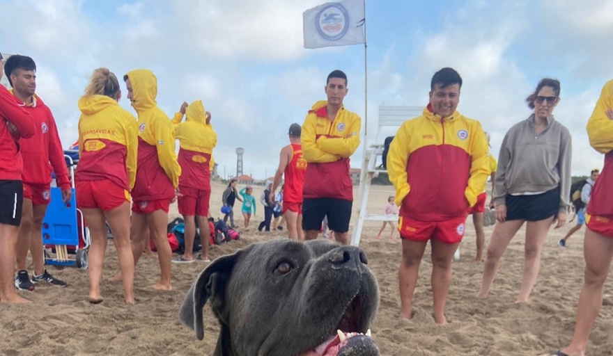 En las playas del centro, sobretodo durante la mañana, se puede observar las corridas y metidas al mar de los jóvenes, pero el martes trascendió la aparición de un perro entrenado para guardavidas, que también acompañaba las brazadas de los azuleños.