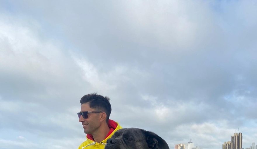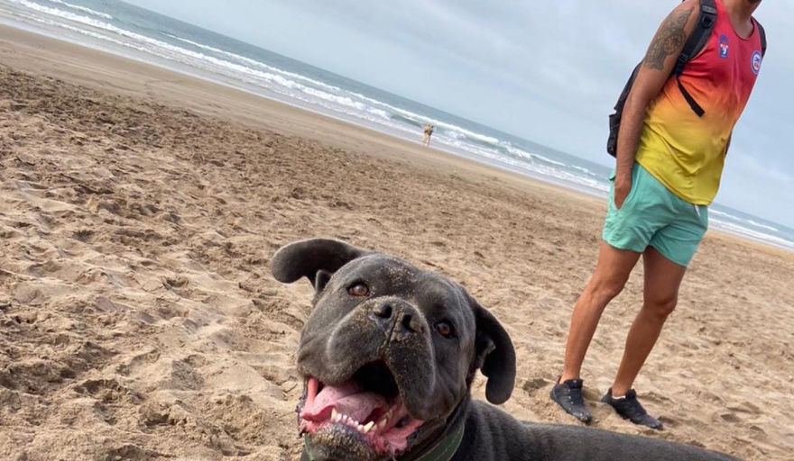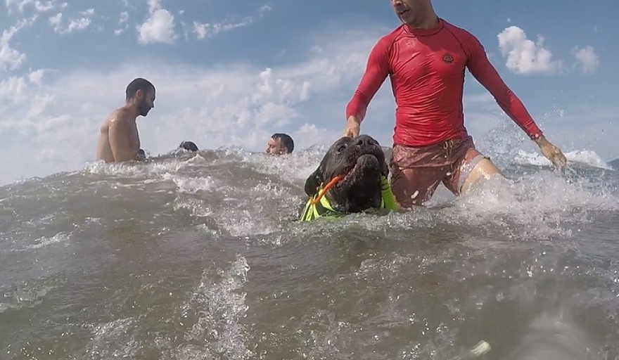 Allí relataron que el perro de cuerpo grande y raza Cane Corso, tiene una historia particular, ya que era entrenado como perro de rescate acuático en un arroyo de la zona, por un dueño anterior que falleció. Luego la familia lo dio en adopción y llegó a manos de este instructor gguardavidas.