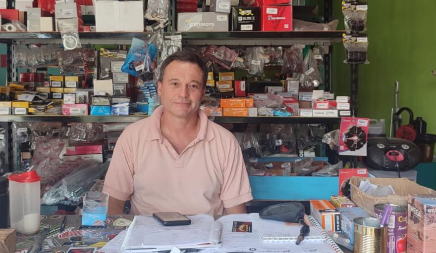 Bravo desde su lubricentro y casa de repuestos de motos, recibió a NDEN y comentó que vive en el distrito de 1988, puntualmente desde 1999 en Quequén.