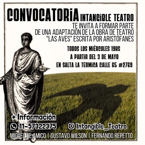 La compañía Intangible Teatro abre la invitación a ser parte de un nuevo proyecto para la creación grupal de una obra en base a la comedia griega "Las Aves" de Aristófanes.
