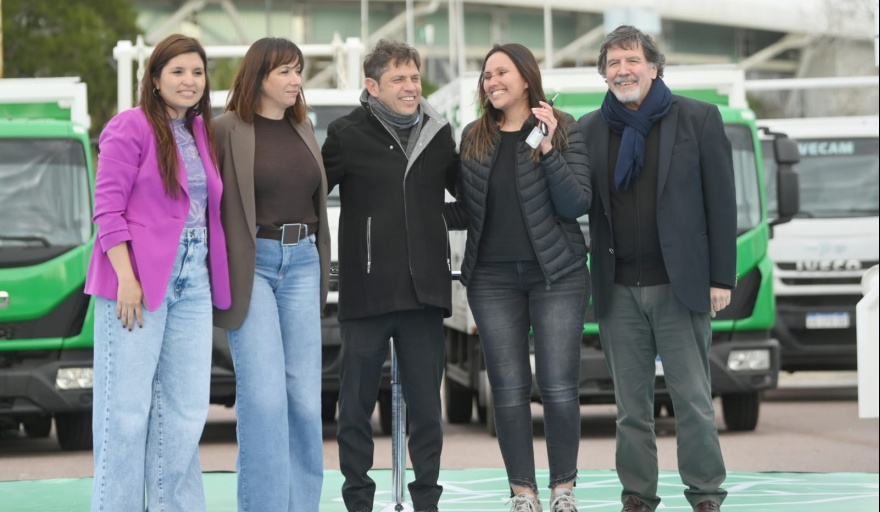 En total se entregaron 58 camiones para la gestión de residuos que forman parte del programa, 23 combis 0km para traslados escolares y 102 computadoras para estudiantes de Centros de Formación Integral y escuelas de Educación Especial.