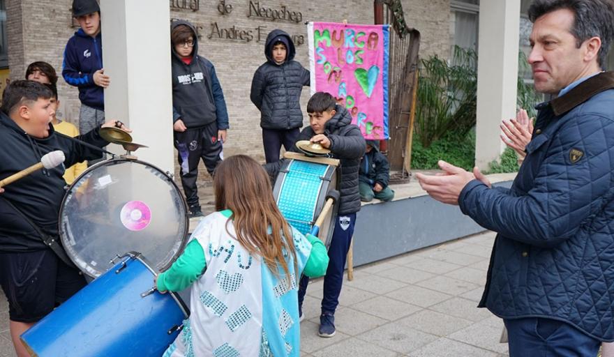 En su visita al edificio donde se realizaron los parlamentos, el intendente Arturo Rojas estuvo acompañado por la secretaría de Desarrollo Humano y Políticas Sociales, Sandra Antenucci, y por la coordinadora del Servicio Local, Laura Carnicero, con quienes pudo disfrutar de la demostración de cariño de los pequeños y las pequeñas asambleístas, así como del ritmo y color de las murgas que pusieron fin al encuentro.