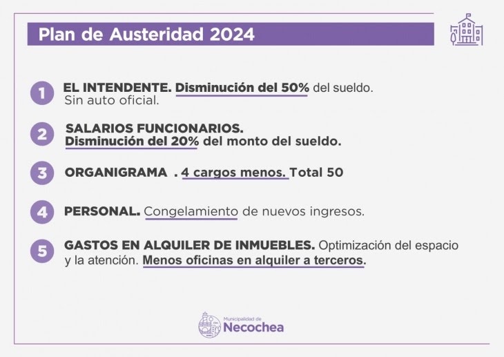En las placas se pueden observar algunas de las medidas del Plan de Austeridad 2024