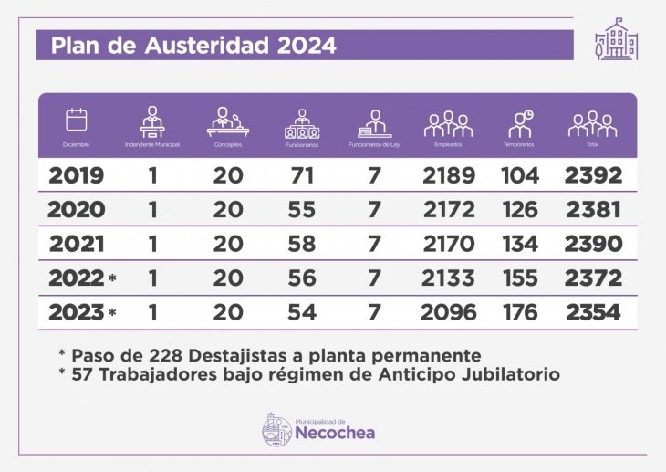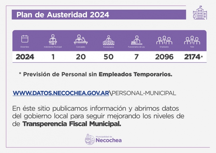 Además de profundizar la política de austeridad, el Intendente subrayó la cuestión de tener un gobierno con una mayor transparencia fiscal. “A partir de ahora en la página datos.necochea.gov.ar podrán ver al personal municipal de acuerdo a la situación de revista, personal de planta, cantidad de funcionarios y cada jurisdicción”.