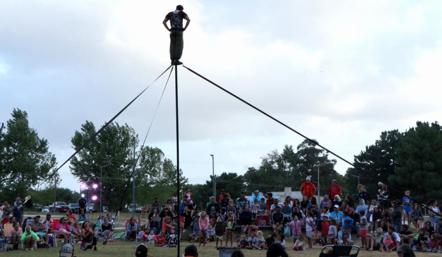 Los más pequeños se deleitaron con las propuestas artísticas de la Juegoteca Viajera de Cultura Rodante, acompañadas por juegos coordinados por el área de Deportes del municipio. El cierre de la primera parte de la celebración fue espectacular, con un show de circo callejero, palo chino, acrobacias y humor a cargo del dúo marplatense Mano a Mano.