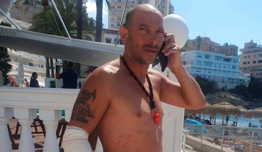 Leandro sufrió raspones y contusiones por los reiterados golpes contra las rocas, en medio del rescate de tres niños en Cala Mayor, Palma de Mallorca.