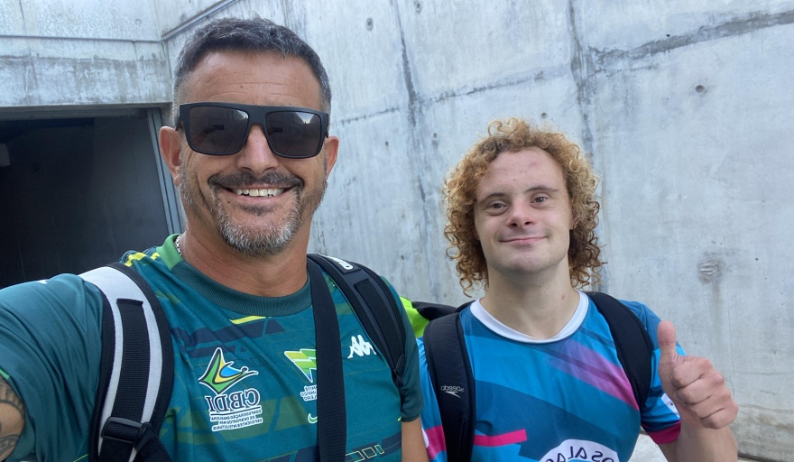 Nicolás está acompañado en la Ciudad de Buenos Aires por su entrenador y coordinador del Programa Municipal de Natación Adaptada “Todos al Agua”, Prof. Marcos Bertone.