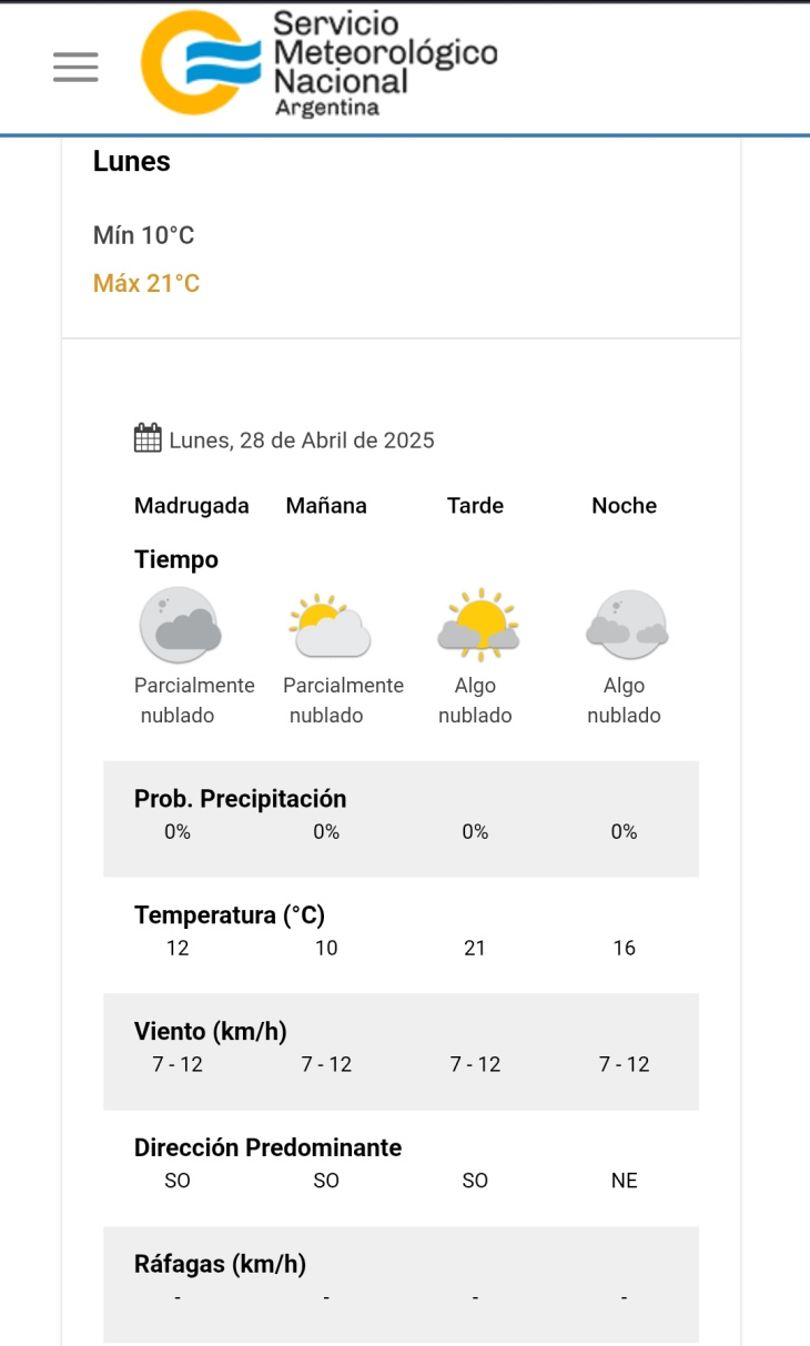 El pronóstico indica que no habrá lluvias, por lo que será un día perfecto para disfrutar del aire libre sin preocupaciones. ¡Aprovechá el buen clima de este lunes!
