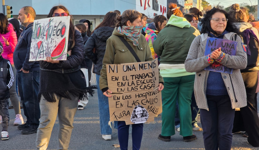 Por la tarde, la situación no mejoró. Mientras en otras ciudades del país las movilizaciones eran numerosas y lograban dar una amplia visibilidad a los reclamos, en Necochea la asistencia fue limitada. Pasadas las 16:00 horas, en la céntrica esquina de 59 y 64, se congregó un grupo reducido de autoconvocados, referentes de gremios nucleados en la CGT, figuras feministas, integrantes de movimientos sociales como el Evita y la Comisión por la Memoria, junto a profesionales y algunos vecinos particulares. La protesta se enmarcaba en la consigna de "unir las luchas", abordando la crítica situación de los jubilados, el impacto del ajuste en áreas sensibles como la salud, la educación, la ciencia, y la continua lucha contra la violencia de género, a un día del aniversario del "Ni Una Menos".