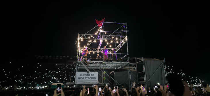 El concierto comenzó con “El túnel de la vida” e “Incandescente”, continuando con clásicos como “Mal delito”, “La vida cura”, “Gigante”, “Cuchillos y escudos”, “Abrime los ojos”, “La lanza de mi fe”, “Fuego de febrero”, “Ella es agua”, “Tesoro escondido”, “Oro de abeja”, “Domador de sombras”, “El cantar de los anzuelos”, “El Ángel del 152”, “Cómo decir que no”, “Romance con el desapego” y el icónico momento de “Las Gaitas”, donde la banda se trasladó buceando entre el público a otro punto del estadio ubicado en el centro de la cancha.