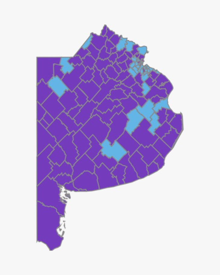 Las principales mejoras de La Libertad Avanza se dieron en distritos del interior bonaerense, como Mar del Plata, Tandil, Olavarría, Necochea, Balcarce y Azul, donde el voto libertario ganó terreno en relación con la elección anterior.