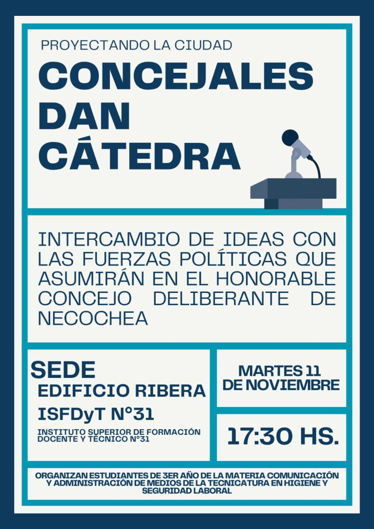 La organización está a cargo de alumnos de 3° año de la carrera Técnico Superior en Seguridad e Higiene Laboral, en el marco de la materia Comunicación y Administración de Medios. La propuesta forma parte de una iniciativa institucional que se repite en cada año electoral, acercando la política local a las aulas y fortaleciendo la formación ciudadana.