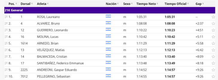 Entre los atletas más destacados, Federico Santibañez, de Necochea, tuvo una actuación sobresaliente en los 21 kilómetros, logrando octavo puesto en la general y la primera posición en su categoría. Su desempeño se convirtió en la mejor actuación de un corredor local en la masiva carrera.