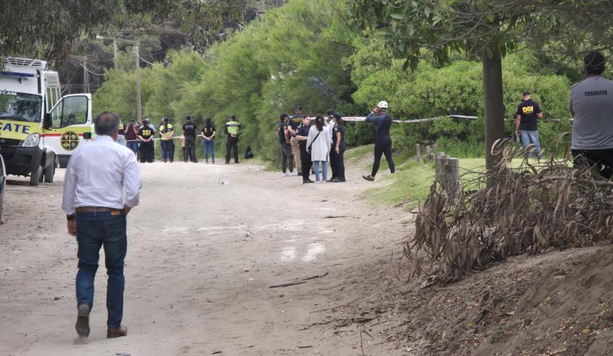 En el lugar trabajan Policía Científica, personal judicial y fuerzas de seguridad, bajo la coordinación del fiscal Walter Pierretégui. La familia de Débora está presente, acompañada por representantes del Poder Judicial y equipos de asistencia.