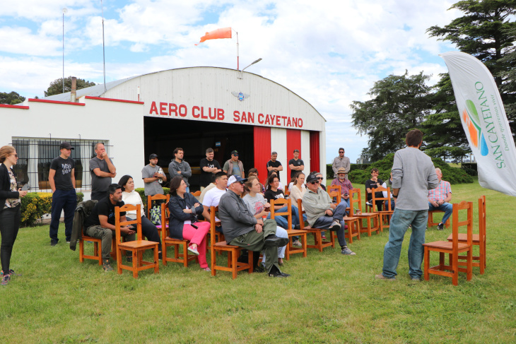 Frente a un público compuesto por productores, aplicadores y vecinos interesados, y tras la presentación de la directora del área, Cecilia Chipulina, Muguerza —representante de la marca DJI y con amplia experiencia en tecnología agrícola— abordó distintos aspectos relacionados con la utilización de drones en tareas de siembra y fumigación.