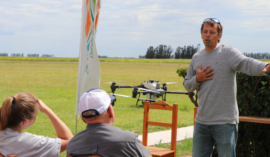 Durante la exposición se detallaron características de los equipos, autonomía de vuelo, capacidad de carga, equipamiento necesario, variables a considerar para fumigar, mapeo, ventajas y costos de implementación. La jornada culminó con una demostración práctica en campo.