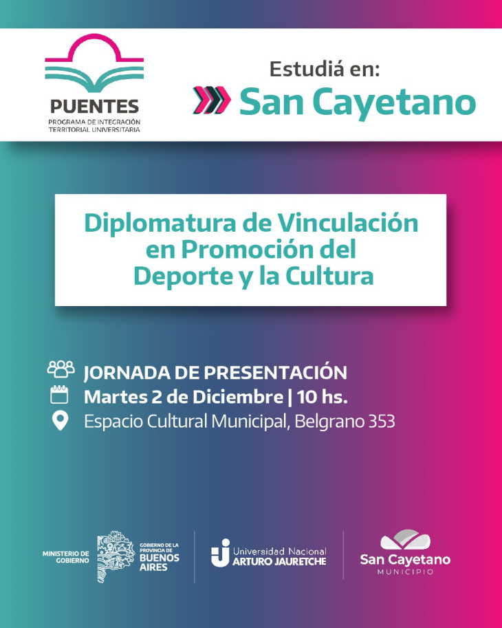 Como parte de la presentación oficial, el municipio anunció que el martes 2 de diciembre, a las 10, se realizará una jornada informativa en el Espacio Cultural de San Cayetano, donde se brindarán detalles sobre la cursada, los contenidos y el alcance de la propuesta.