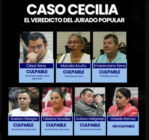 Los tres fueron hallados culpables de homicidio doblemente agravado por el vínculo y por violencia de género. César Sena fue condenado en carácter de autor, mientras que sus padres, Marcela Acuña y Emerenciano Sena, fueron responsabilizados como partícipes primarios. El jurado alcanzó su decisión de manera unánime.