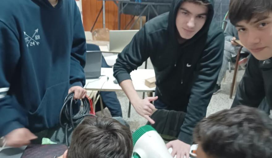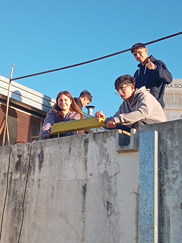 El parque minieólico fue impulsado por estudiantes de 7.º 2.ª, quienes llevaron adelante cálculos, diseños mecánicos y eléctricos, fabricación de piezas, montaje de estructuras y conexionado final.