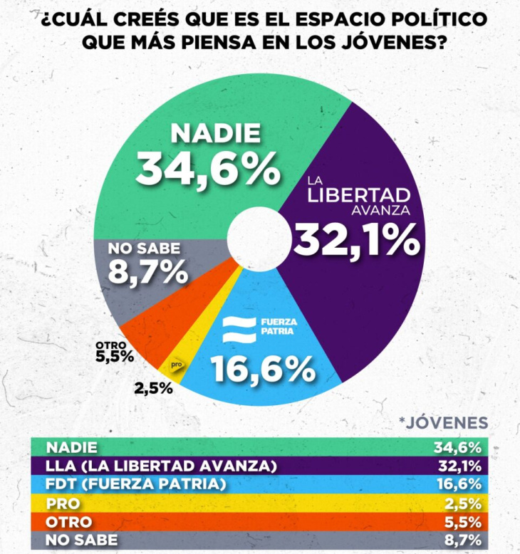 Uno de los datos más contundentes es que el 34,6% de los jóvenes sostiene que ningún espacio político piensa en su generación.