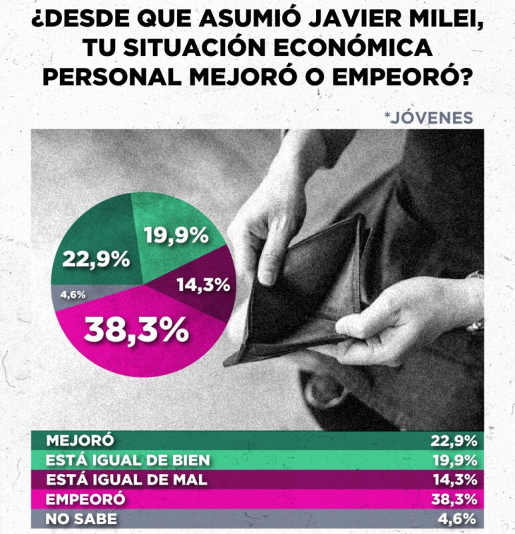 El panorama económico personal también muestra deterioro: un 38% afirma que su situación empeoró en el último período, frente a un 22% que percibió mejoras.