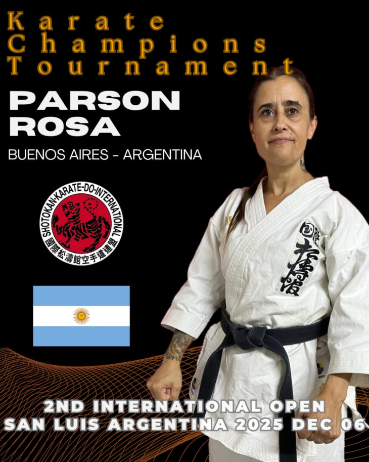 Parson, integrante de Shotokan Karate-Do International – SKIF Argentina Hoitsukai, institución presidida por Sensei Sergio Pereyra, llega a esta competencia con una trayectoria consolidada dentro de las artes marciales. Es directora del Dojo Centro de Formación Kinética y ha obtenido reconocimientos en múltiples certámenes nacionales e internacionales, destacándose por su técnica, disciplina y constancia.