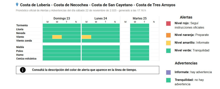 Se recomienda a los vecinos de la costa bonaerense seguir los canales oficiales de información y extremar precauciones ante cualquier situación que pueda generar riesgos por la intensidad del viento.