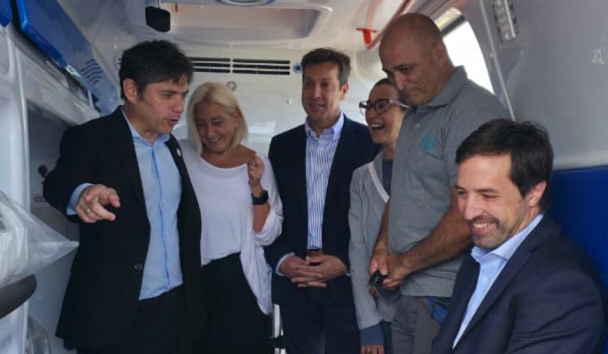 El gobernador y el ministro de Salud bonaerense, Nicolás Kreplak, entregaron las llaves del vehículo al intendente Arturo Rojas y a la secretaria de Salud municipal, Andrea Perestiuk. Se trata de un móvil completamente equipado para la atención de emergencias críticas y traslados interhospitalarios.