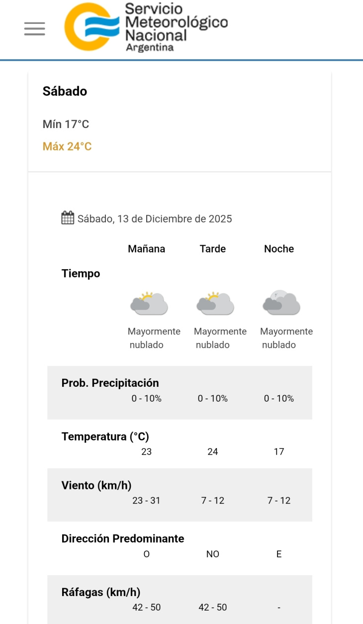 Hacia la noche, la temperatura descenderá hasta los 17°C, con viento leve del Este y cielo mayormente nublado, sin lluvias previstas para el cierre del día.
